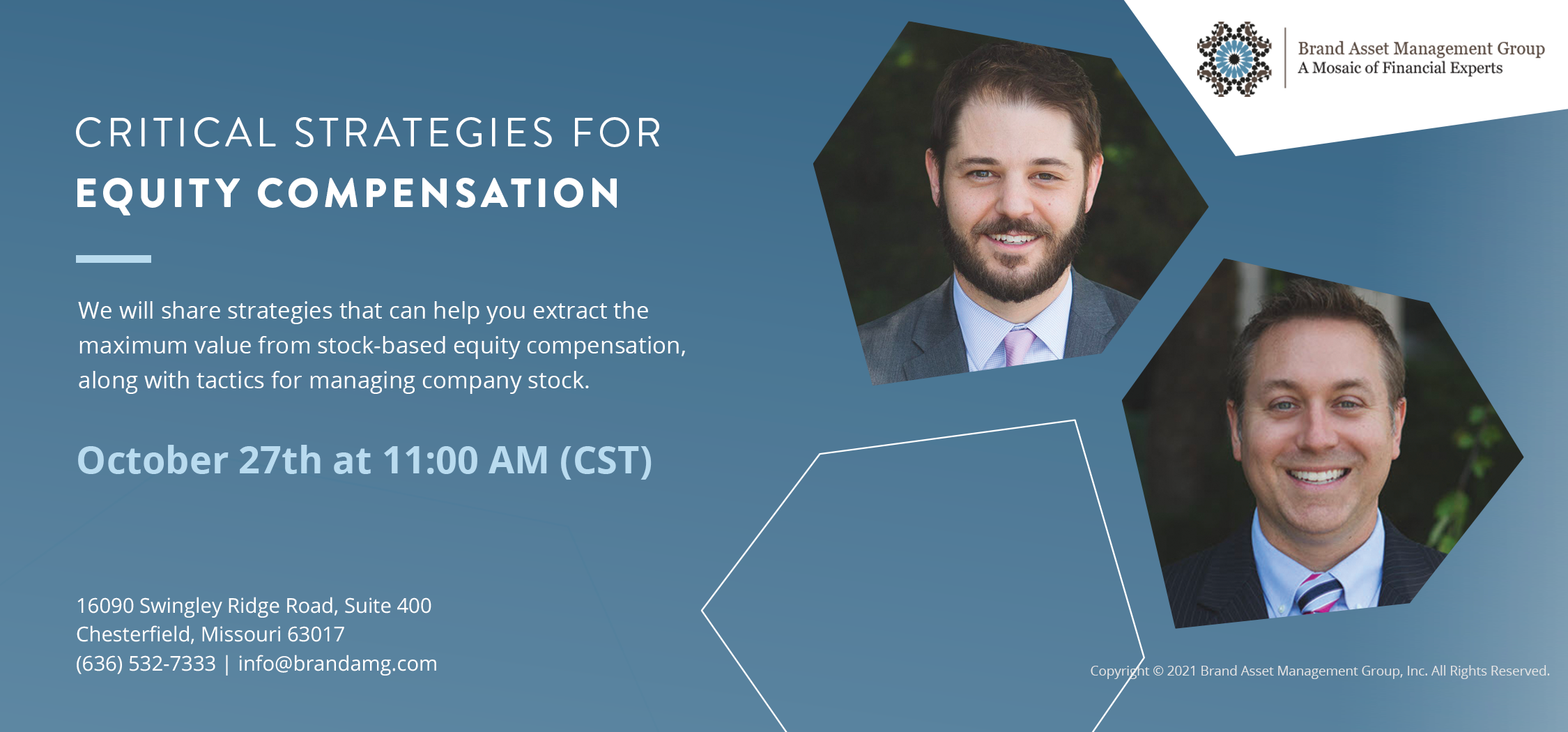 When properly managed, equity compensation can provide significant value to you, your family, and your legacy. However, equity compensation can also be complex to navigate and, if mismanaged, can introduce concentration risk to your portfolio. Recently, Brand AMG’s Ryan Green and Ryan Bouchard hosted a webinar where they shared strategies to help you extract the maximum value from stock-based equity compensation.